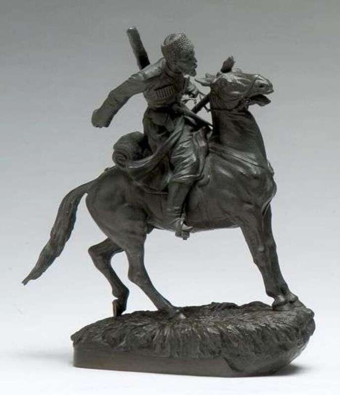 Signed in Cyrillic, dark brown patina. H: 14 3/4 in.