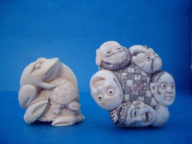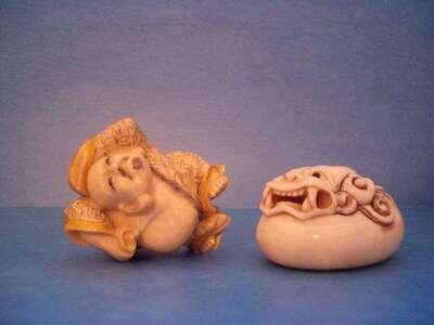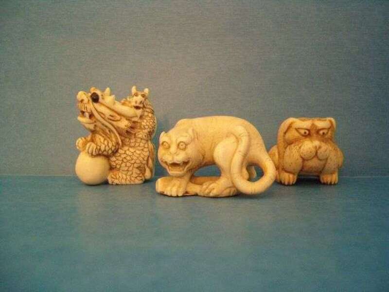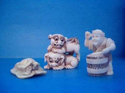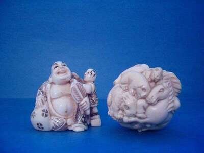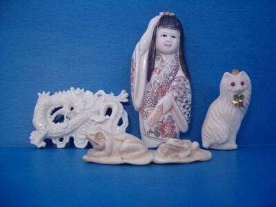 Group of Netsuke, Beads, and Figures Asian