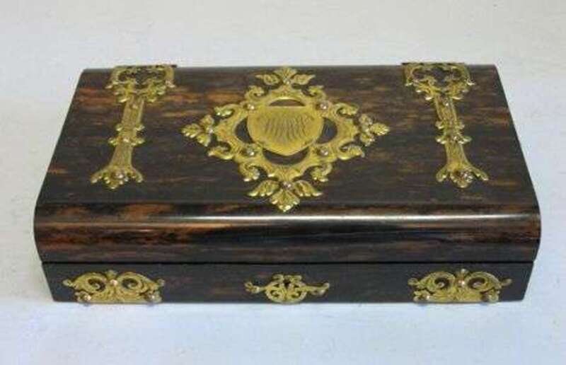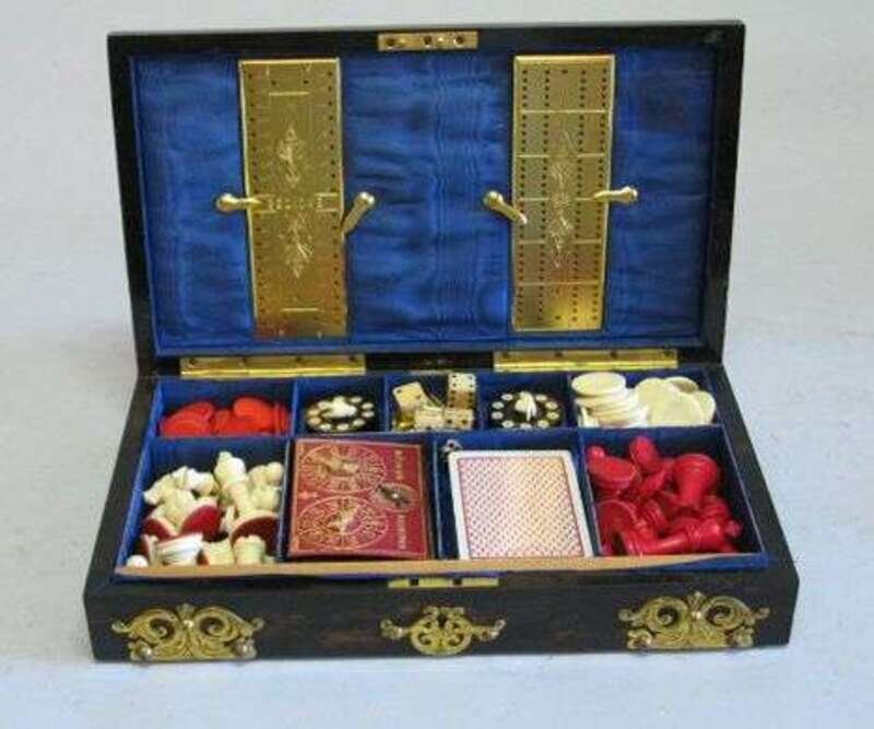 Victorian brass bound coromandel games compendium, retailed by Leuchars Ca. 1880