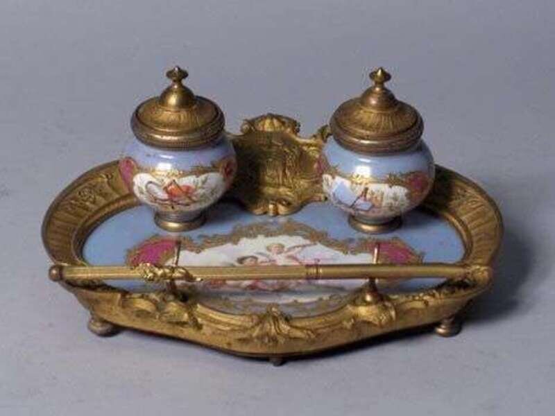 Sevres-style porcelain and gilt bronze inkwell early 20th c.