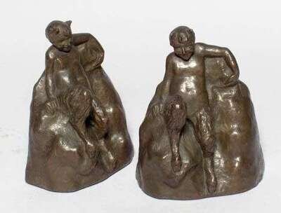 Pair of bronze bookends signed E. Freeman Ca. 1914