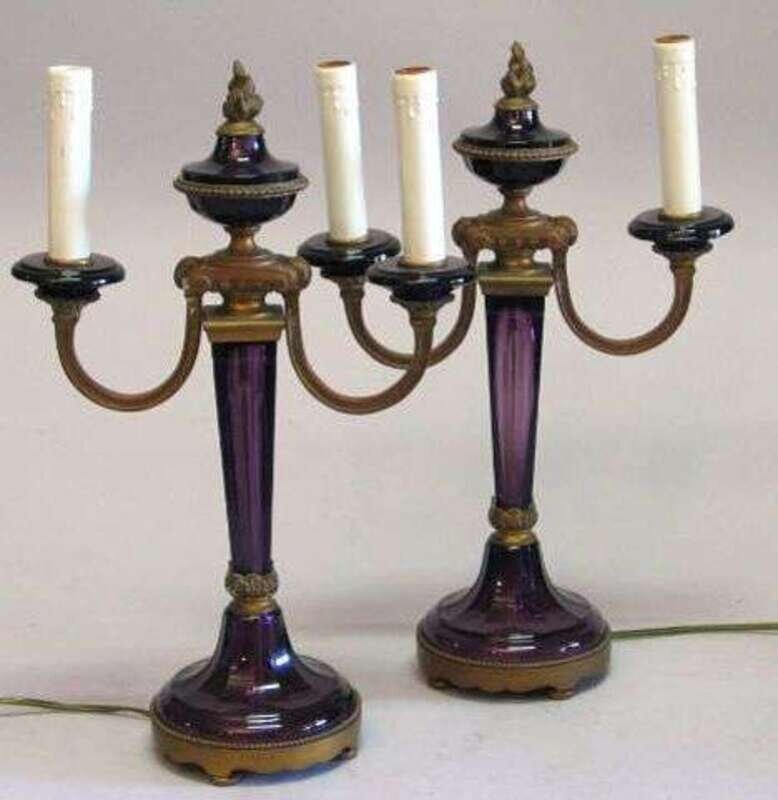 Pair of French amethyst glass and gilt-bronze candelabra early 20th c.