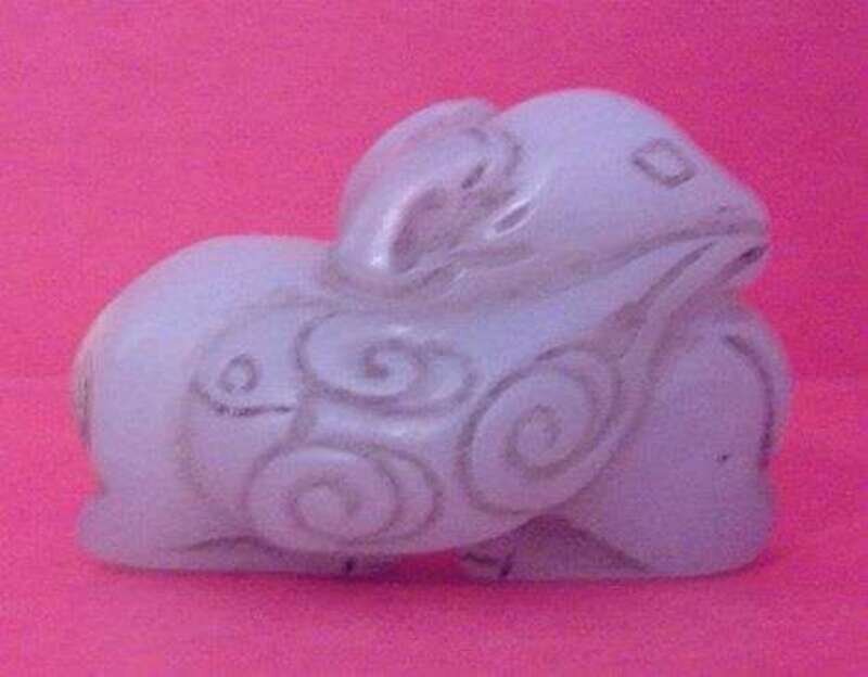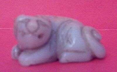 Including three jade Netsuke, Recumbent Ram; Recumbent Tiger; Two Playing Mice .