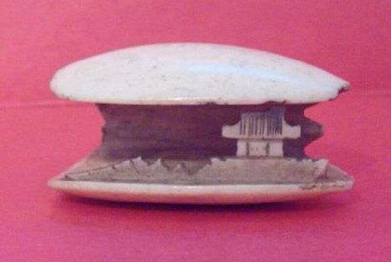 Depicting an open clamshell of ivory containing Kurohige's palace. Signed, Gyokuichi, possibly Tamaichi.