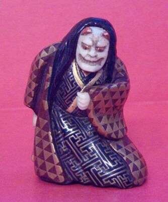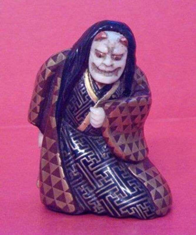 Depicting an intricately lacquered wood figure of Hannya. Signed, Kozan.