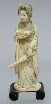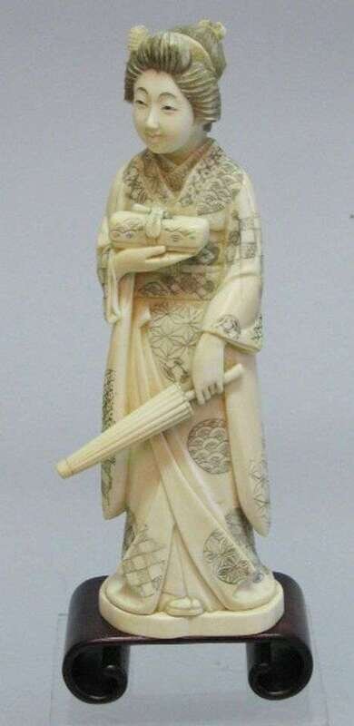 The standing figure wearing a kimono and holding a parasol. H; 8 1/2 in.