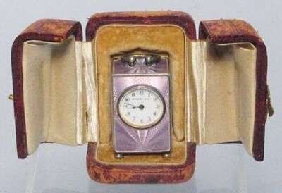 Small Asprey's silver & guilloche enamel traveling clock early 20th c.