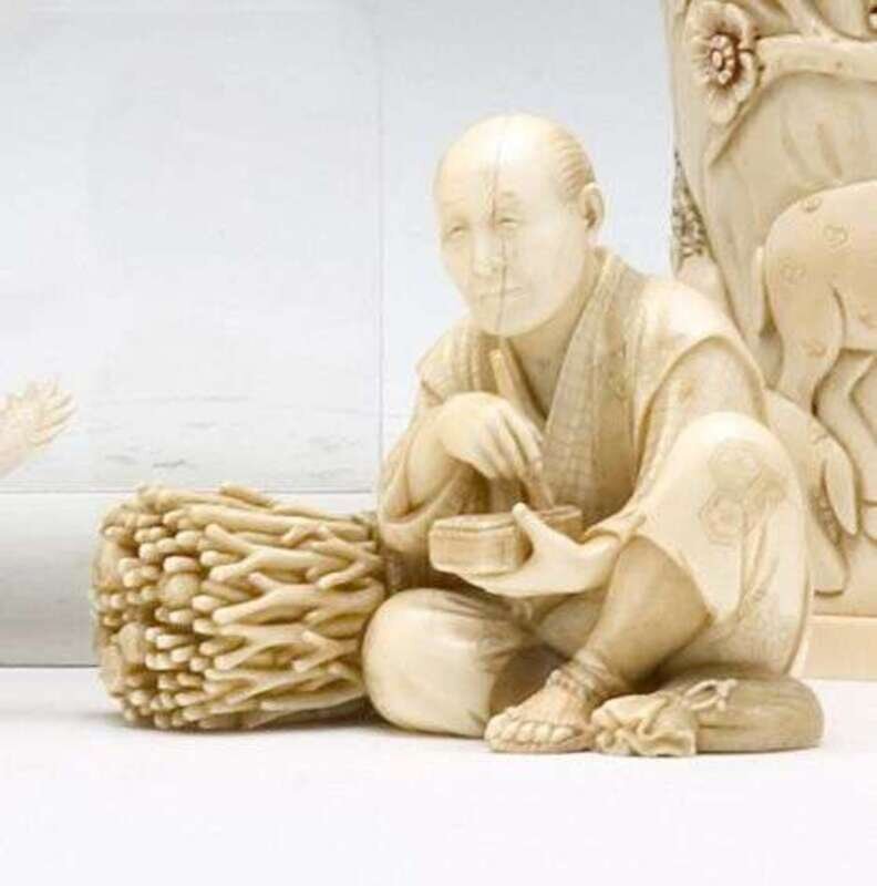 Japanese carved ivory figure wood carrier Meiji period (1868-1912)