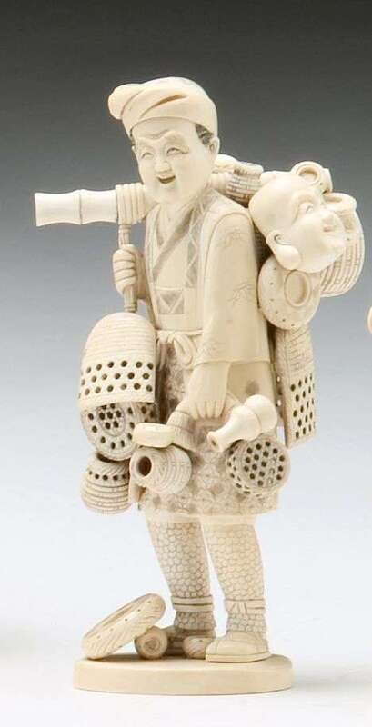 Japanese carved ivory figure basket seller Meiji period (1868-1911)