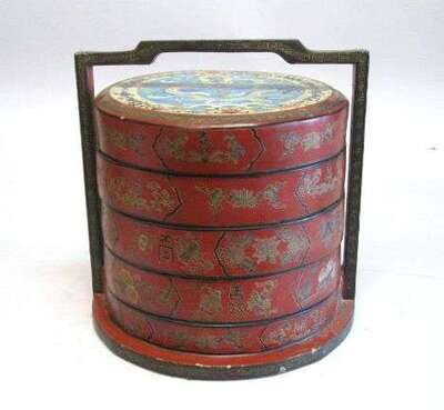 Japanese red lacquer & cloisonne food container (Jabuko) 20th c.