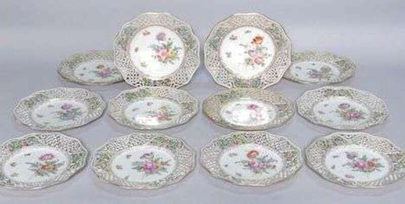 Set of twelve reticulated Dresden porcelain plates 20th c.