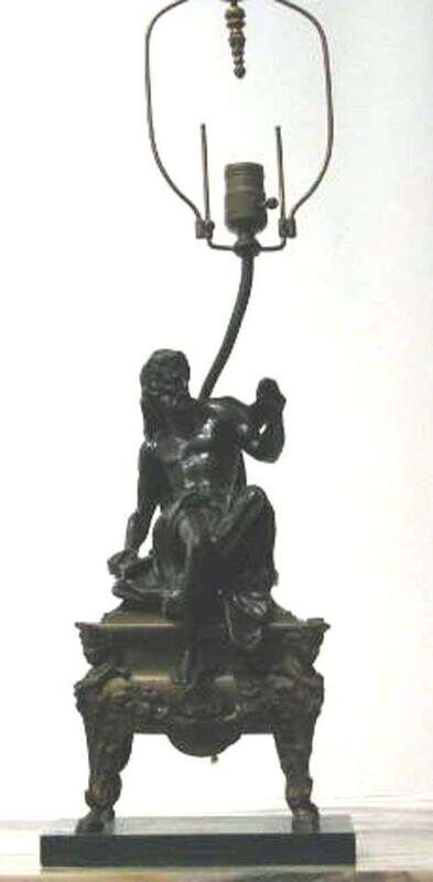 Bronze figure of a draped male seated on a gilt Neo-classical style stool, raised on a malachite veneered base. H: 14 1/2 in, converted to a lamp.