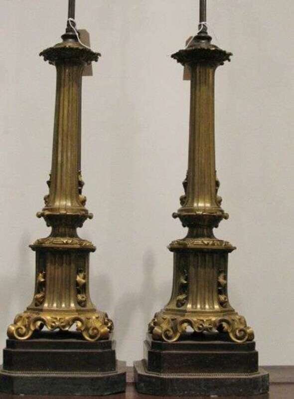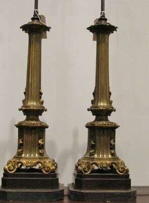 Pair of Continental gilt-metal lamps late 19th c.