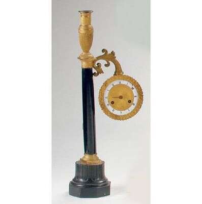 UNUSUAL FRENCH MARBLE, GILT-BRONZE & EBONIZED CLOCK