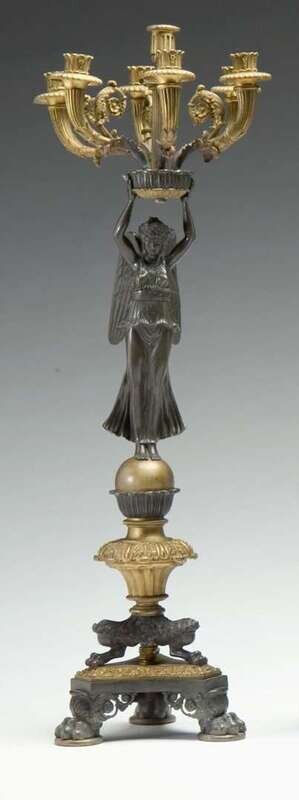 Pair of Empire style gilt & patinated bronze candelabra 19th c.