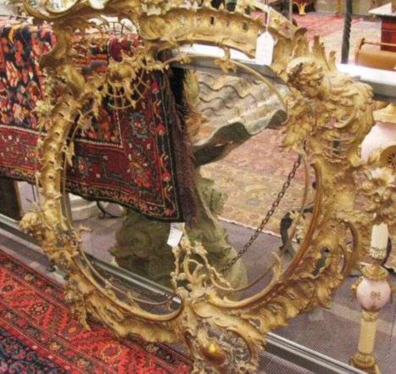 The ornate oval frame cast with c-scroll and foliage, flanked by angels. H: 51, W: 51 in.