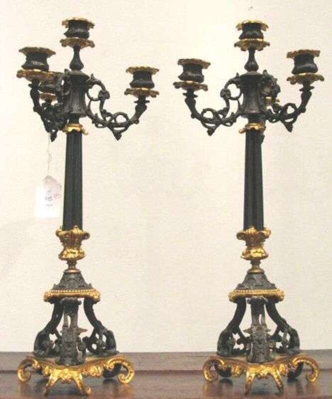 The reeded column surmounted by three open scroll arms, supported on an open scroll base.