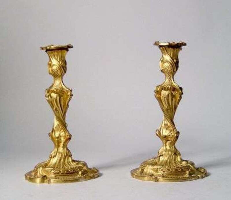 PAIR OF LOUIS XV-STYLE GILT-BRONZE CANDLESTICKS