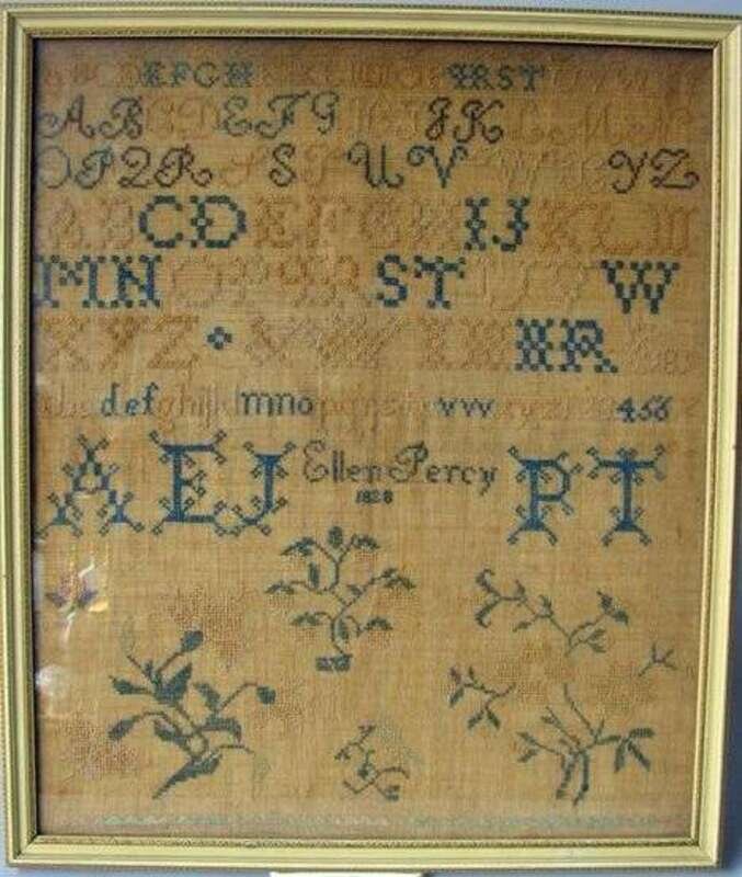 Needleworked sampler Ellen Percy, 1828