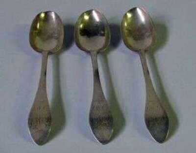 Three silver tablespoons david hall (1760 - 1799) philadelphia pa
