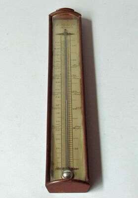 Mahogany and bowed glass thermometor j. mcallister & co., philadelphia, late 19th century