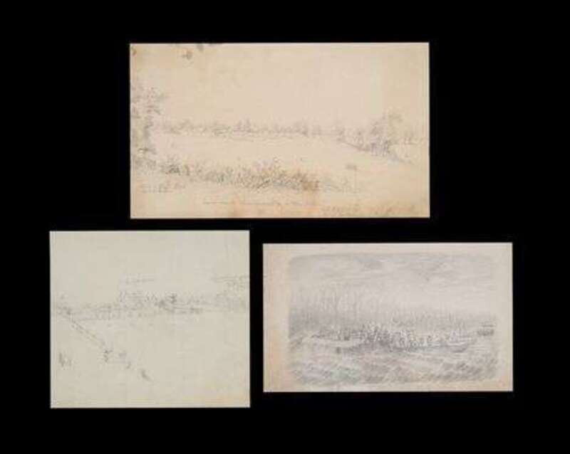 American school 19th century three civil war sketches