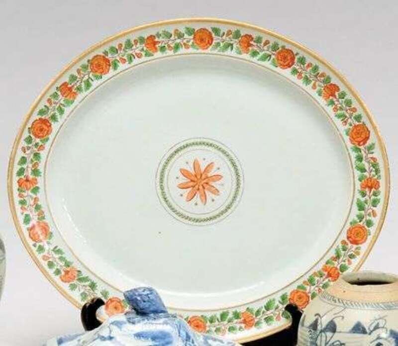 Export porcelain oval platter china, 19th century