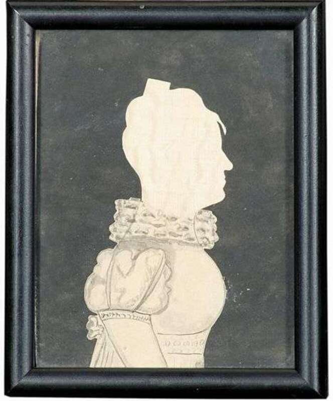The head backed with white silk, the bodice in white paper heightened with graphite and ink wash on a black ground, framed.