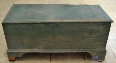 Rectangular molded hinged lid opens to well with till, straight bracket feet. Restoration. H: 23 1/2 in W: 48 3/4 in. D: 20 5/8 in.