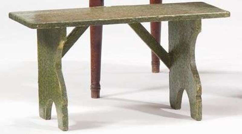 Rectangular top with turned shaped supports with cut out demilune feet and diagonal back brace.