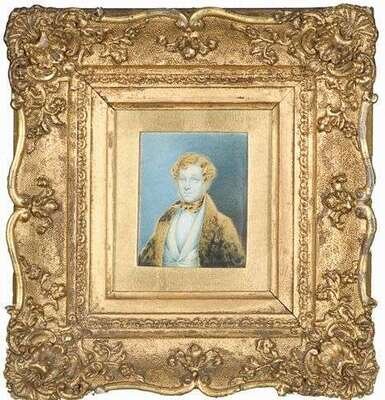Inscribed on reverse "taken by Robert Humphreys 30 sept 1834," watercolor on ivory, framed 3 1/4in. x 2 3/4 in. discoloration.