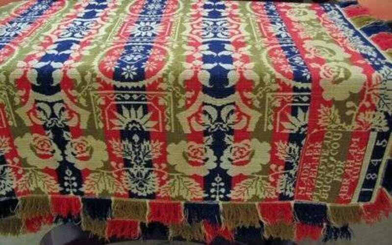 Woven wool and cotton coverlet plumstead, bucks county, pa., 1845