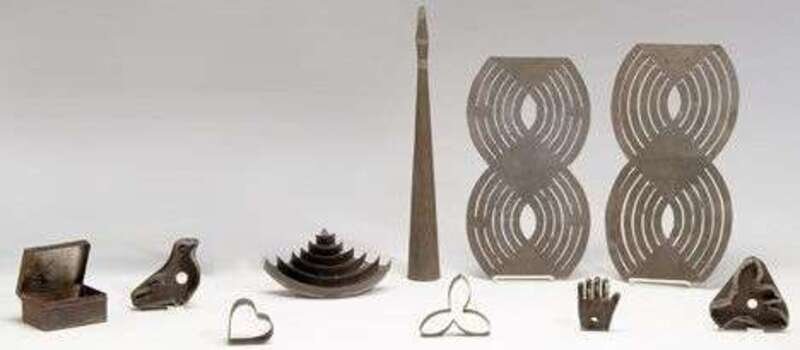 Comprising four cookie cutters in the form of a hand, dove, heart and bird, four quilting patterns, rectangular covered box and a horn.