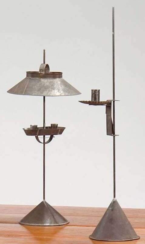 Two adjustable tinware candle holders pennsylvania
