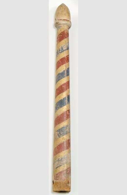 Painted with red, gold and blue striping. Weathering and paint loss.