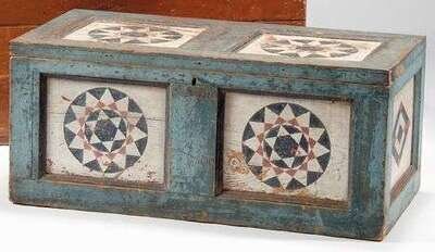 Painted and decorated pine chest probably new england late 19th early 20th century