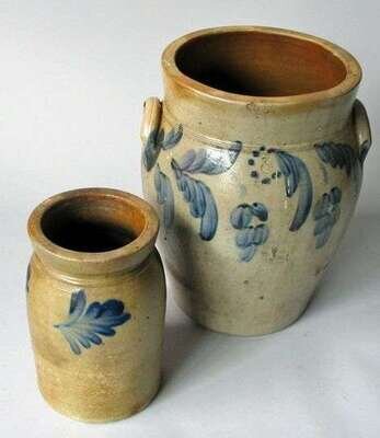 Cobalt-decorated stoneware crock and jar second half 19th century