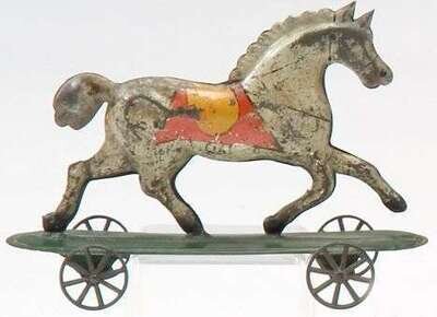 George Brown stamped-tin horse pull toy connecticut , ca. 1875