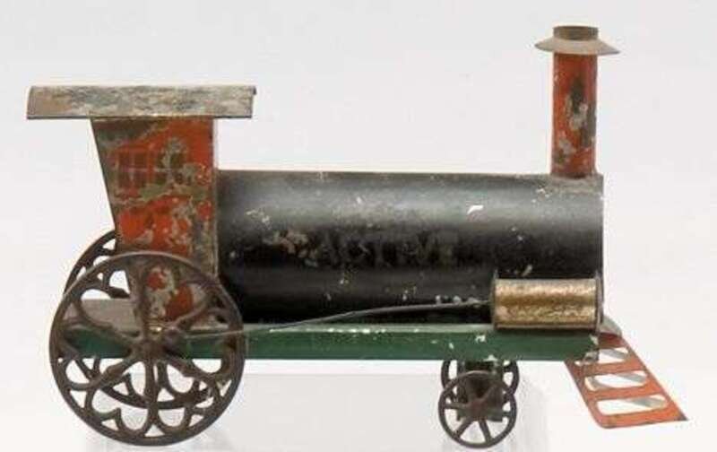 Stenciled and painted tinware train engine merriam manufacturing company, durham, connecticut, ca. 1875
