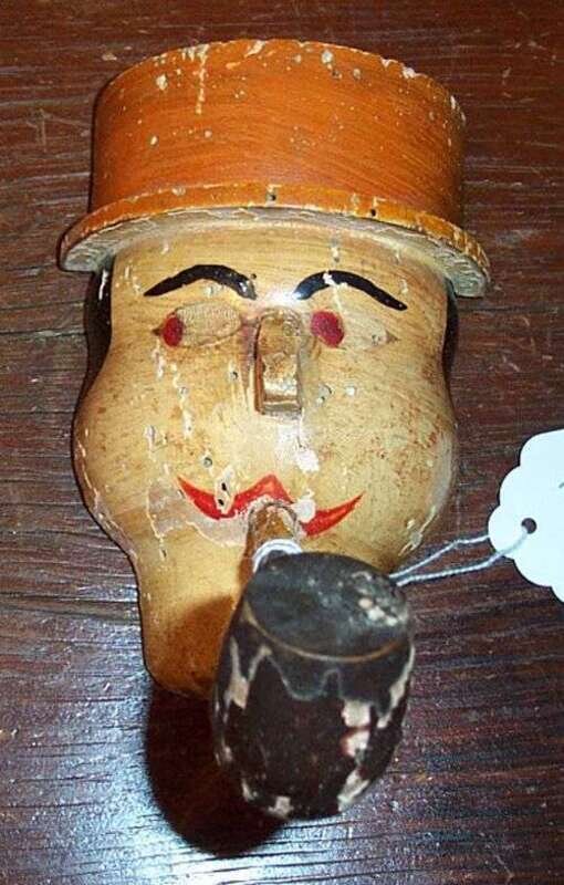 CARVED AND PAINTED HEAD OF MAN WITH PIPE