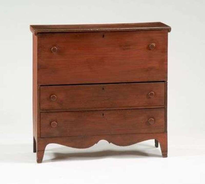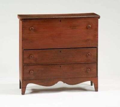 Red painted blanket chest with drawers 19th century new england