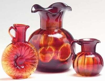 Including an amberina Bulls-eye vase, amberina Sunflower pitcher and an amberina Chubby creamer.