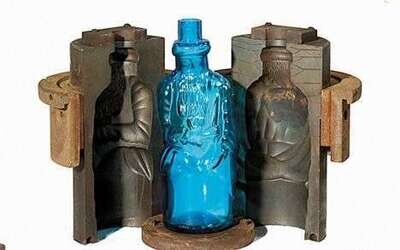 Moses mold together with large colonial blue Moses bottle.