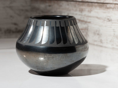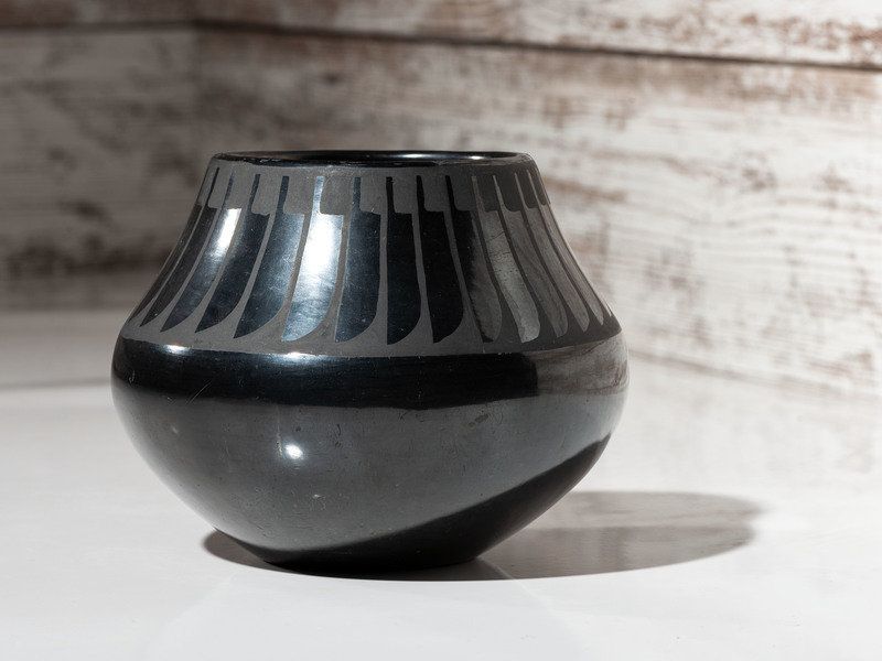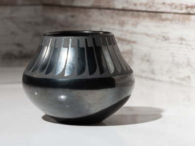 Blackware Pottery Jar, with Repeating Feathers
