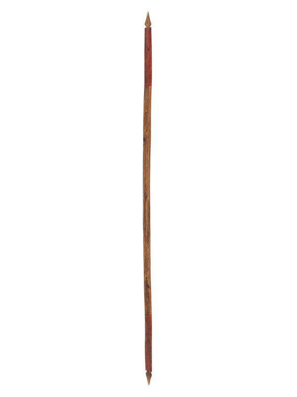 notched bow with barked backing; red and black painted blocked elements; length 48 inches