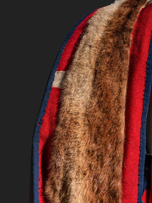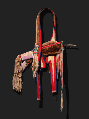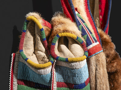 Bowcase-quivers are perhaps the most elaborate objects decorated in the Transmontane style of beading. Though a practical container for a bow and arrows, the heavily beaded flaps and tabs combined with the richness of the otter fur and trade cloth make these objects true works of art. Worn on dress occasions, such a quiver displayed the wealth and prestige of the owner and the skill of the beadworker. These quivers were made primarily by the Nez Perce people and their neighbors on the Plateau. This is only one of six unaltered and complete otter skin bowcase-quivers known.