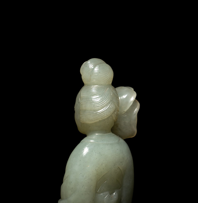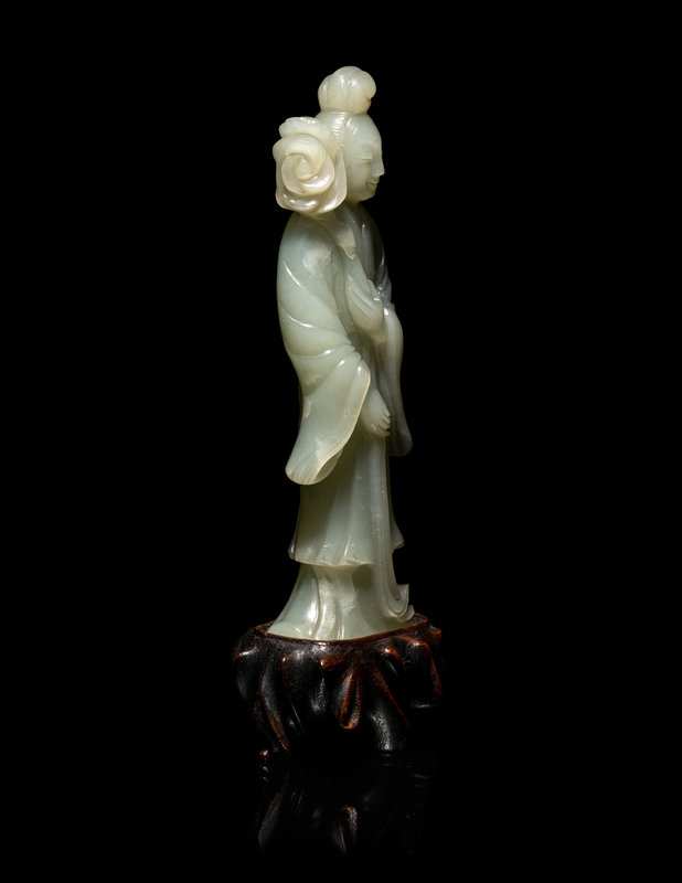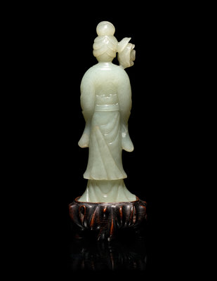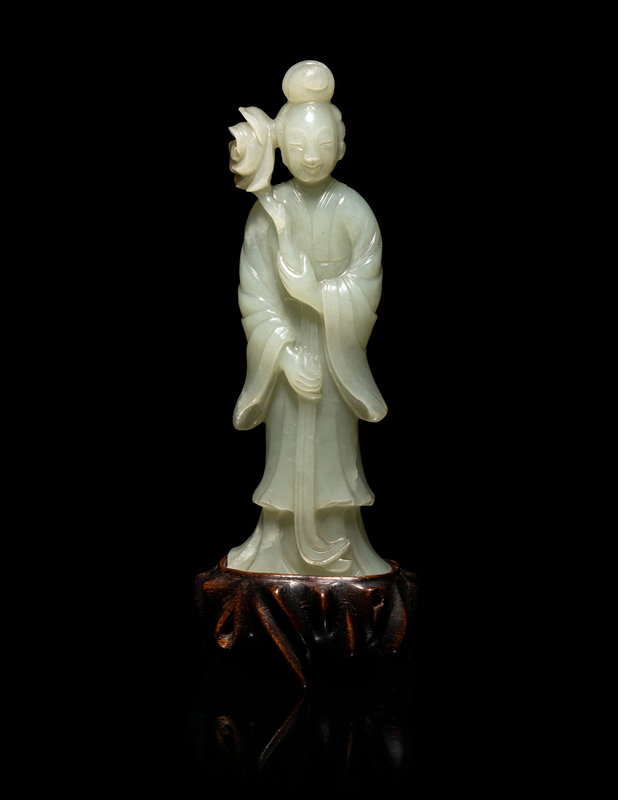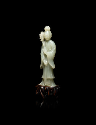 A Chinese Carved Pale Celadon Jade Standing Female Figure