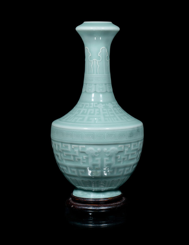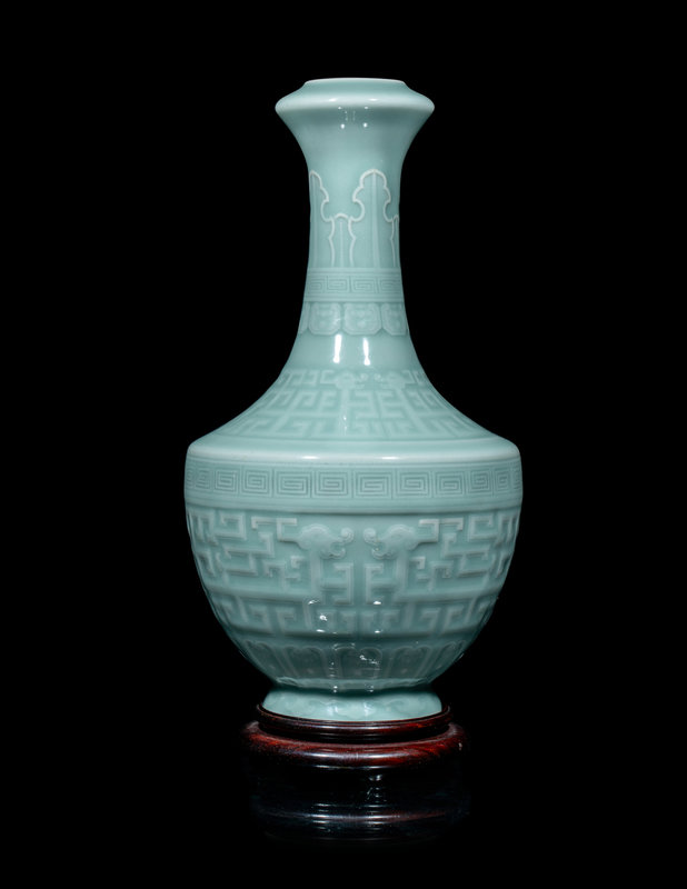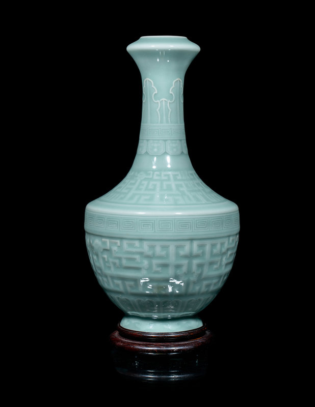 A Chinese Carved Celadon Glazed Porcelain Vase