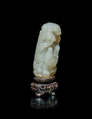 A Chinese White Jade 'Scholars Playing Go' Carving