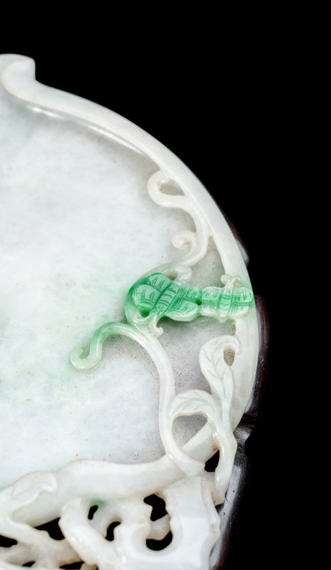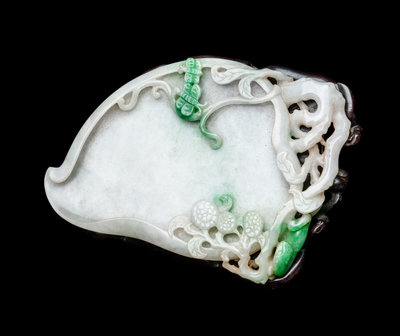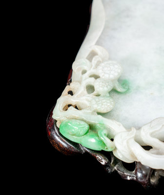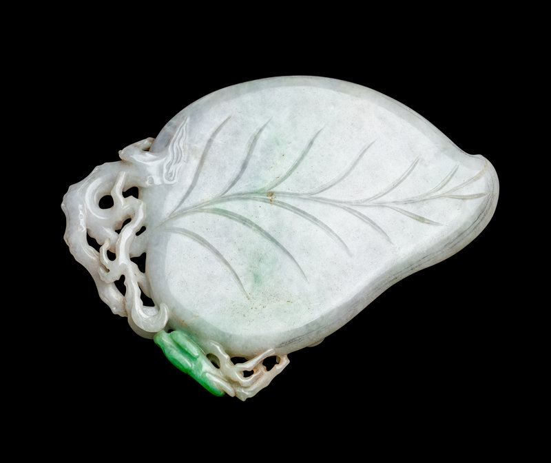 A Chinese Apple Green and White Jadeite Leaf-Form Ink Palette